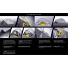 Tente 4 saisons LITETREK PRO 2 TENT Salewa La tente de randonnée LITETREK PRO 2 Salewa est une toile de tente 2 places autoportée, semi-géodésique, double paroi, 3/4 saisons, typée Montagne, voyages, pays nordiques… Testée résistante aux vents de + de 90km/h. Arceaux extérieurs pour un montage tous temps même sous la pluie. Fourreaux Hypalon renforcés. 1 entrée + 1 abside Dimension chambre : 120cm x 210cm Dimension totale : 140cm x 260cm Hauteur intérieur : 1m Surface Vestibule : 0,56m2 Tissus Double toit: 20D Nylon Ripstop SI/PU 3000 mm Tissu tapis de sol: 40D Nylon Ripstop PU 10000 mm Arceaux: 3 x Alu T6 7001 8,5mm colorés pour montage facile. Piquets :10 Y-Pegs aluminium 14,5cm Haubans : 4 Dyneema réfléchissants Couleur : 4745-Lightgrey / Mango Dimensions pliée : 40 x 19cm Poids mini/maxi : 1700g / 2000g
